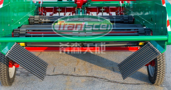 分离清选后的马铃薯输送到机器的后方,通过调整集条挡板的宽度,将马铃薯铺放在地面上,以便捡拾。