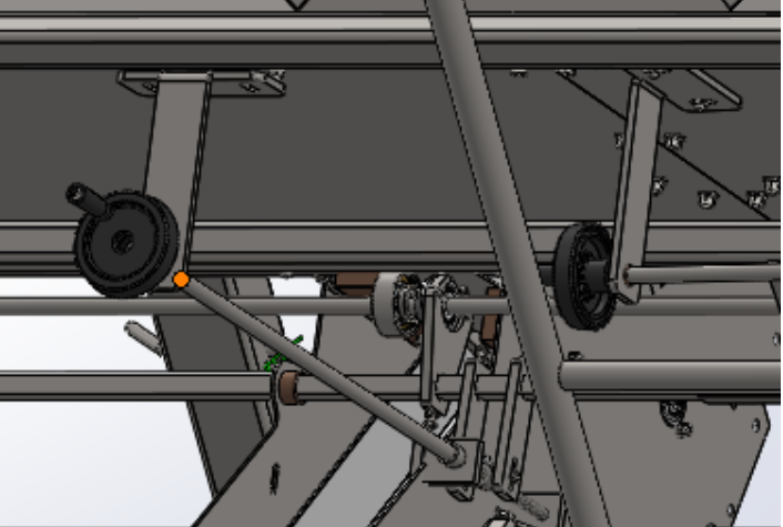 3. 前舱门的大小通过上面的旋转手柄来调节,旋转手柄带着方钢转动,方钢带动连接支板,连接支板与偏心轴套,轴套带着舱门。